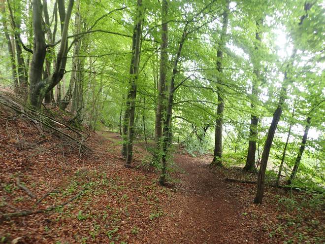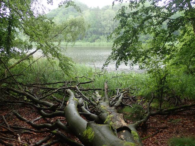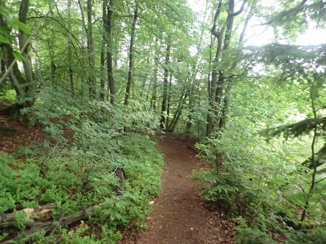 Am Lütjensee Nach noch flachem Beginn wurde es bald wilder. Dabei kamen schnell Höhenmeter zusammen. Die Anstiege wanderte ich wie immer. |
