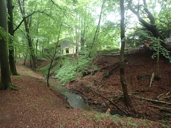 Am Mönchsteich Hier war es mit Laufen schnell vorbei. Die Strecke wurde viel zu wild. |