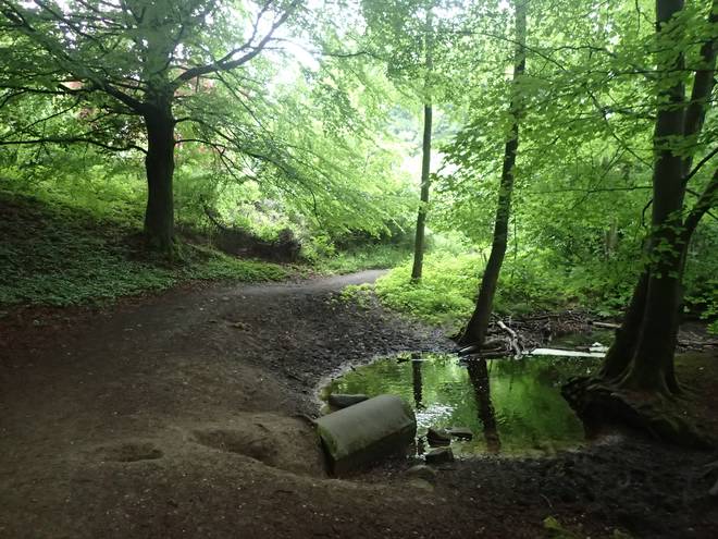 Am Mönchsteich Hier legte ich die zweite Pause zum Trinken ein. |