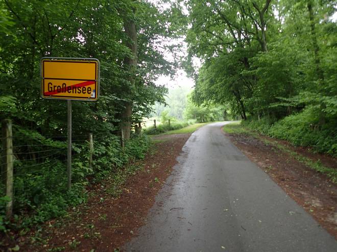 Seestraße Am Großensee Nach einem längeren geraden Waldstück kam ich zurück an den Großensee. |
