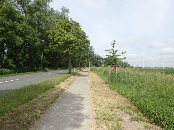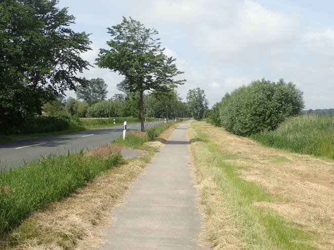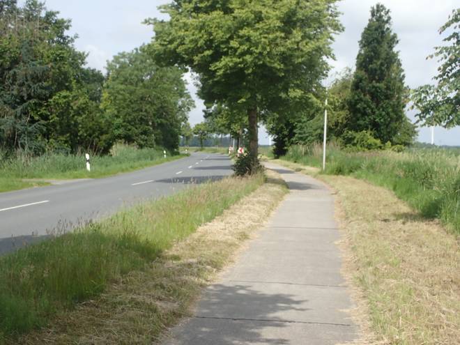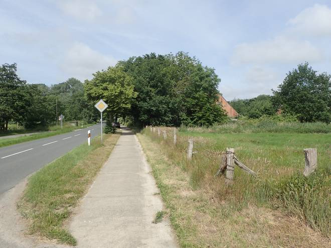 Lüdingworther Straße Nun ging es immer geradeaus die Hauptstraße entlang. Und das gegen den Wind. Aber ich kam gut voran. |