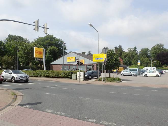 Am Altenwalder Bahnhof Hauptstraße Altenwalde Der Netto-Supermarkt wäre meine nächste Möglichkeit für Getränke gewesen. Aber ich hatte keine Lust, durch einen Supermarkt zu laufen und ließ auch den aus. |