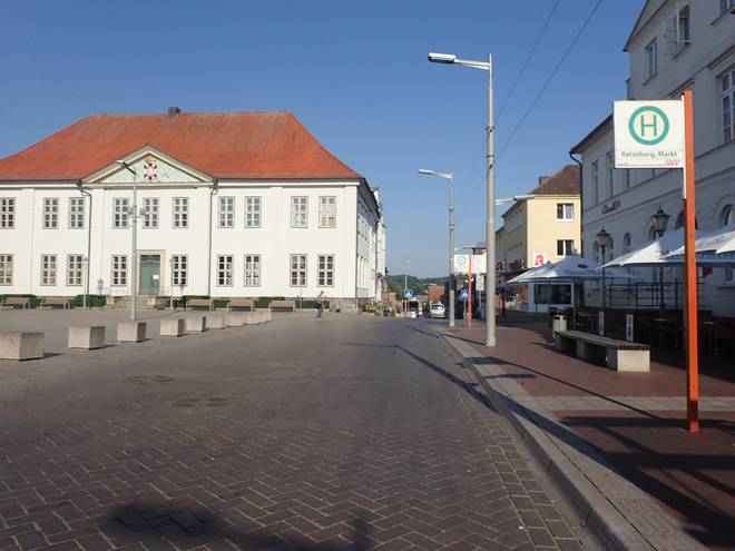 Am Markt Ratzeburg 7.53 Uhr Schnell mit dem Taxi an den Start fahren waren nicht drin. Der Bus brauchte bummelige 18 Minuten für 2,2 Kilometer. |