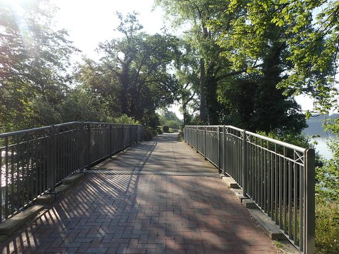 Promenade Holzbrücke Ratzeburg Links der Schwanenteich... |