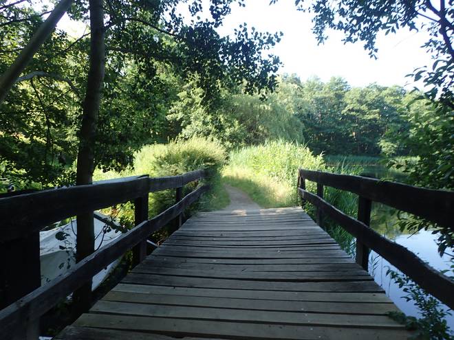 Kleinbahndamm Ratzeburg Dieser Damm trennt Kleinen Küchensee (links vom Damm) und Küchensee voneinander. Früher fuhr hier mal die Bahn. |