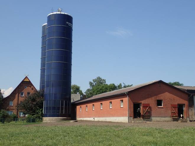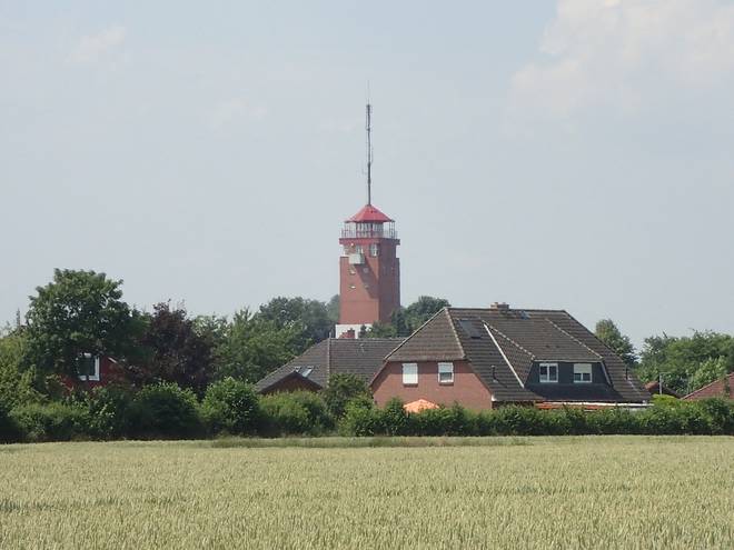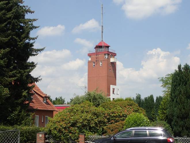 B 207 Endlich zeigten sich die ersten Gebäude von Elmenhorst. Der Turm gehört zur Feuerwehr. |