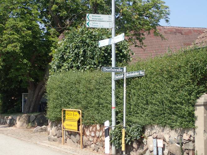 Mühlenstraße Dorfstraße Noch ein Kilometer bis nach Talkau. |