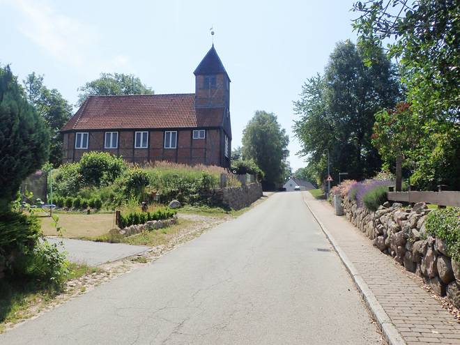 Dorfstraße Niendorf-Stecknitz Die hübsche St. Anna-Kirche. Erbaut 1581. |