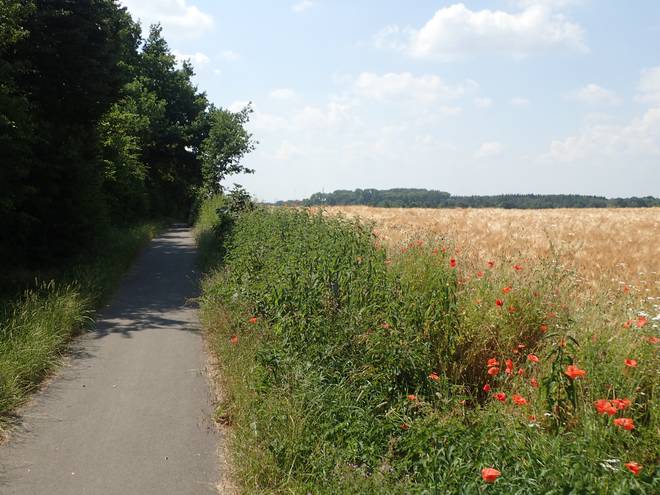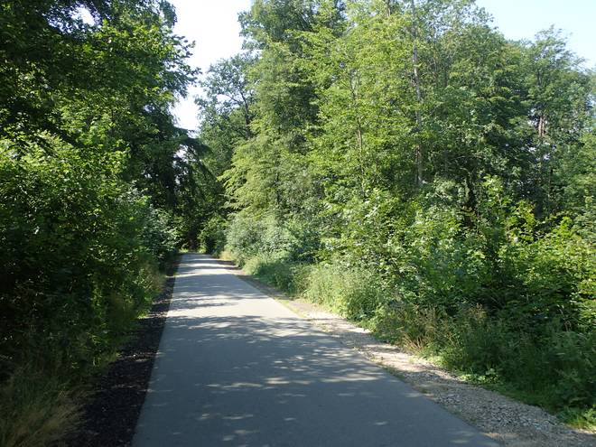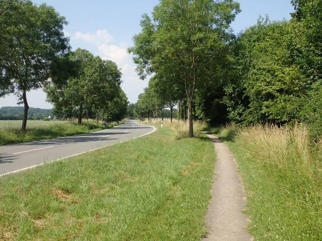 B 207 Bei den Flüssen und Bächen nervt es ganz schön, wenn sie knapp neben dem Weg sind, man sie aber nicht sieht. Bei der Bundesstraße störte das nicht so. Die verlief hier direkt hinter den Bäumen auf der linken Seite. |