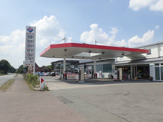 B 207 Elmenhorst Glück gehabt. Die Tankstelle existierte tatsächlich. Ich holte vier (!!!) Flaschen. 2,25 Liter. 0,75 Liter hella gingen gleich vor Ort auf Ex weg. Erstmals mußte ich Flaschen zurück lassen. Für insgesamt zehn Flaschen (drei von zu Hause, drei aus Mölln) mit insgesamt 5,5 Liter war kein Platz im Rucksack. |