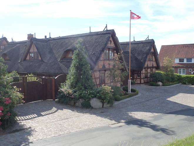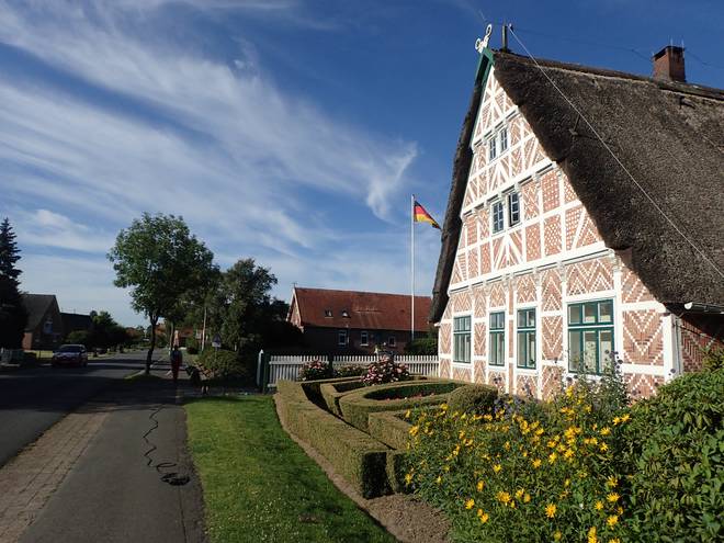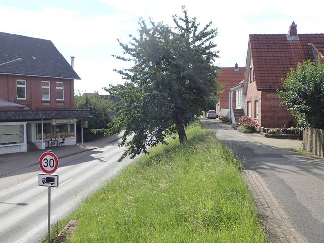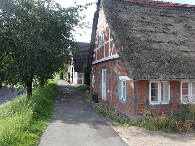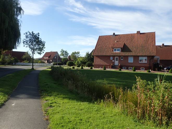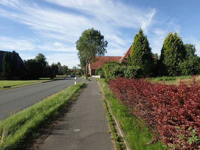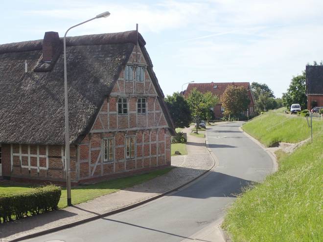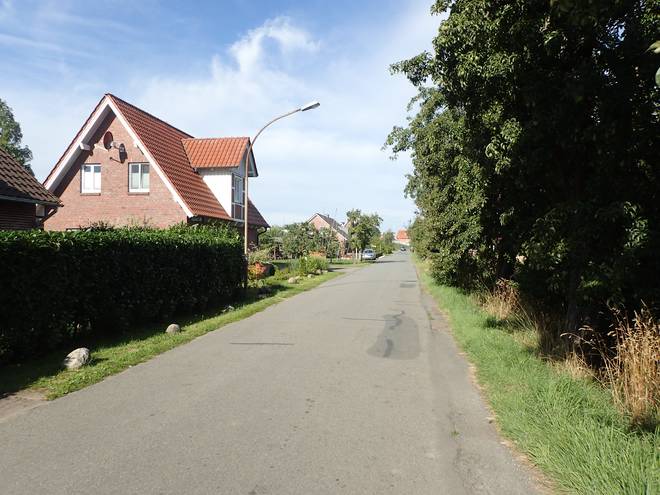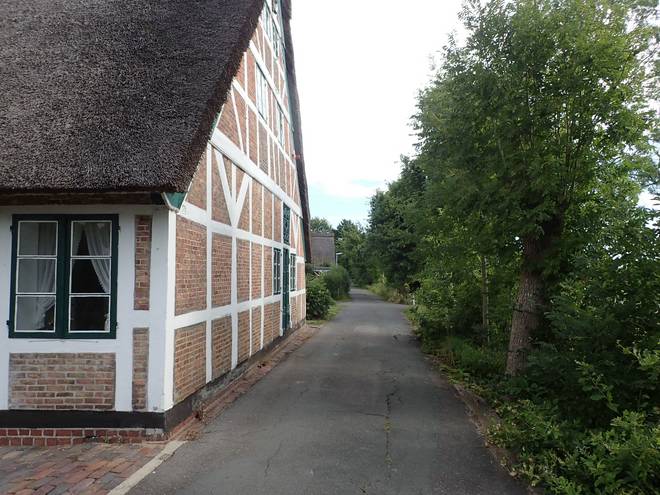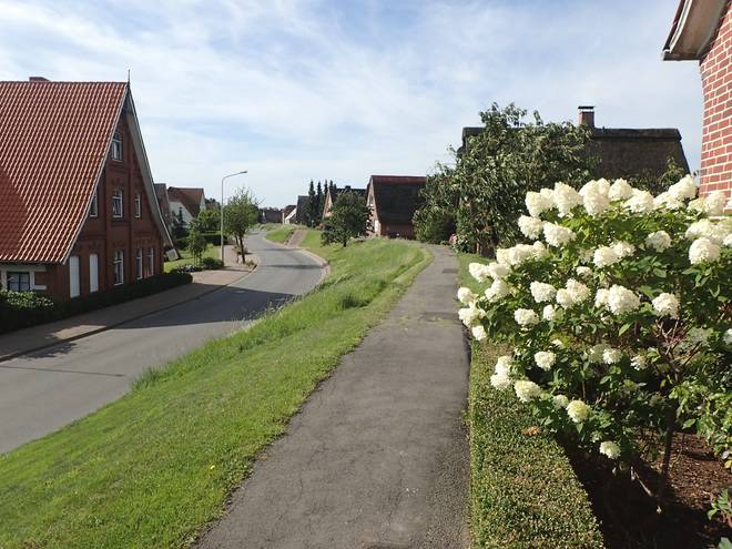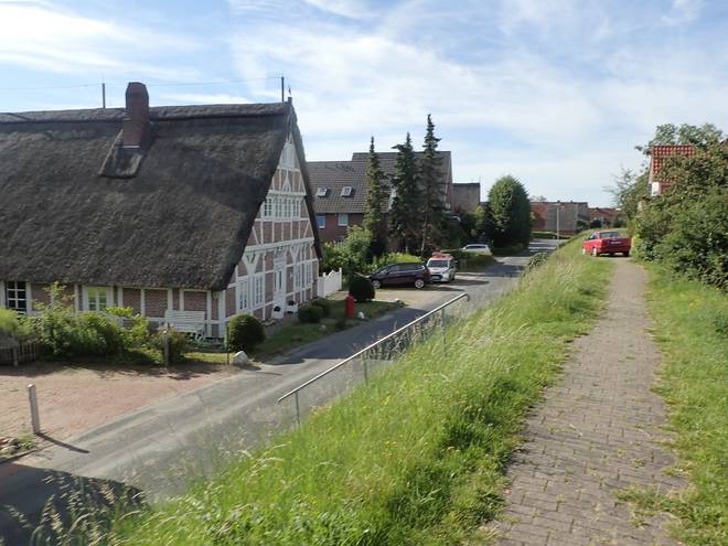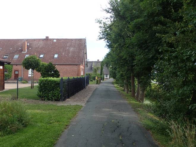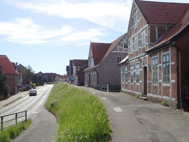 Dorfstraße Mittelnkirchen Hier war der schöne Weg auf dem Deich für mich vorbei. Es war Zeit, sich von der Lühe zu verabschieden. |