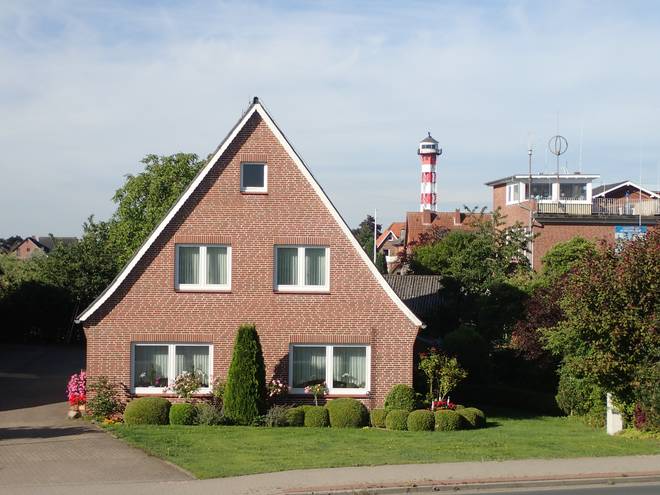 Kirchenstieg Grünendeich Einen Bäcker, eine Apotheke, eine Kirche... so etwas haben viele Leute in ihrer Straße, aber einen Leuchtturm? |