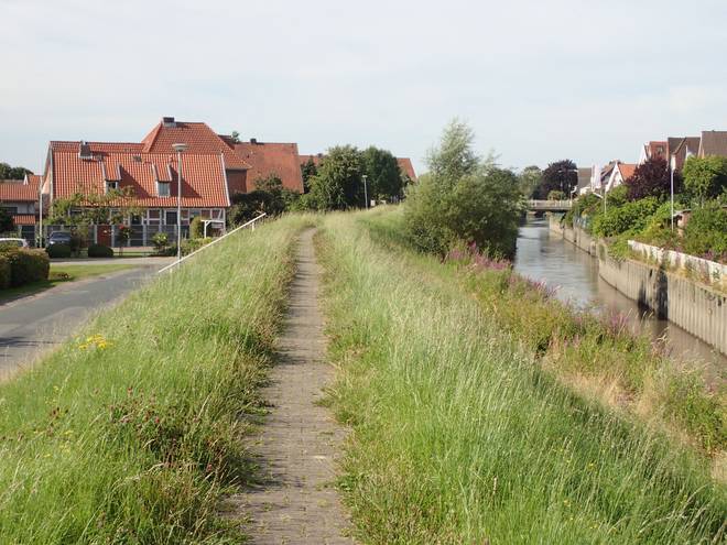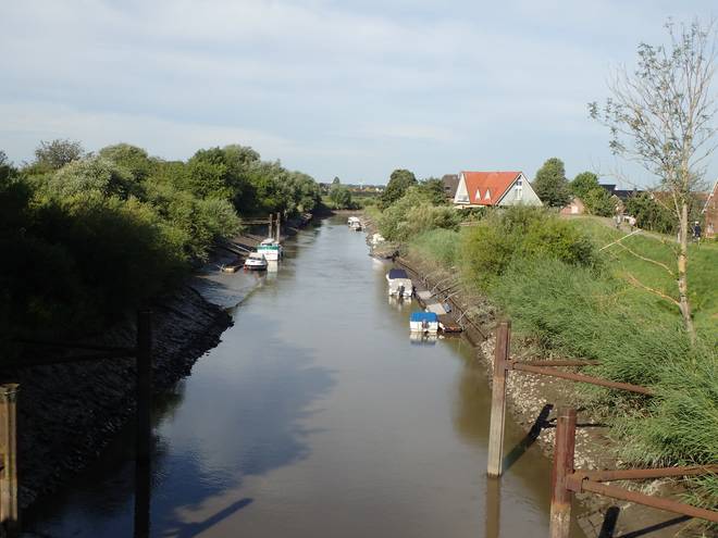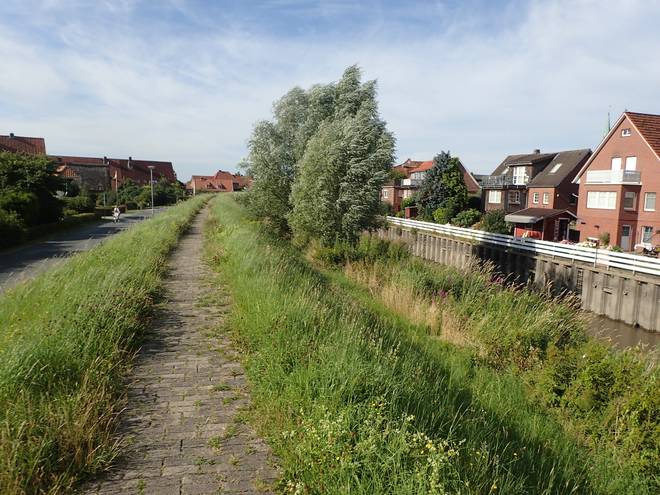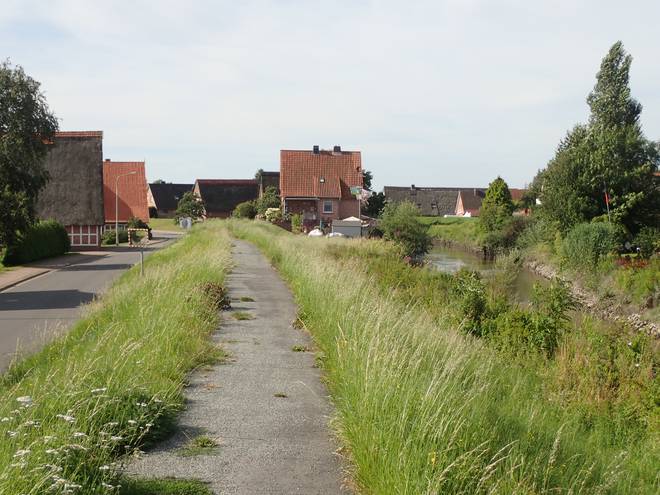 Hinterdeich Über die Neuenschleusener Wettern ging es weiter. |