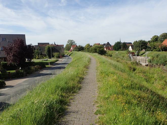 Ort Mittelnkirchen Aber hier ging es endlich den Deich rauf. |