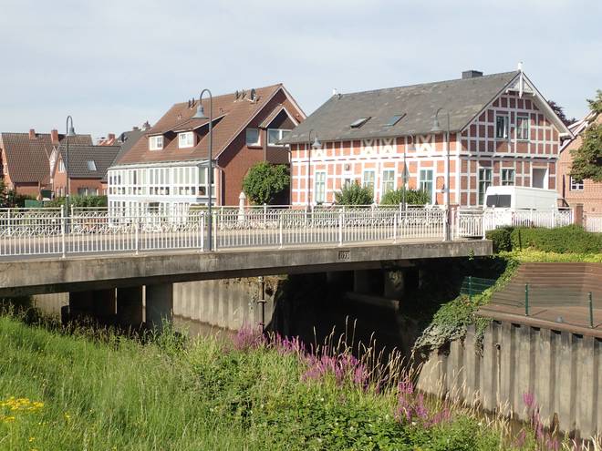 Ort Mittelnkirchen Die Hogendiekbrücke über die Lühe. Sieht ein wenig aus wie Holland, ist es aber nicht. |