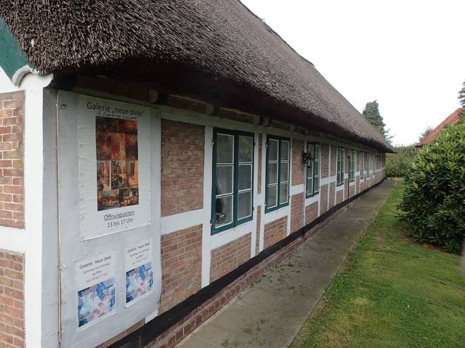 Hinterdeich Die Galerie "neue diele". Ist nur von 13 bis 17 Uhr geöffnet und auch daserst ab dem 16. November. Wobei das Plakat so alt aussah, daß ich keine Wetter auf das Jahr machen würde. |