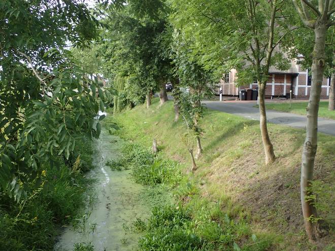 Hinterdeich Kurzer Blick zurück auf die Neuenschleusener Wettern. |