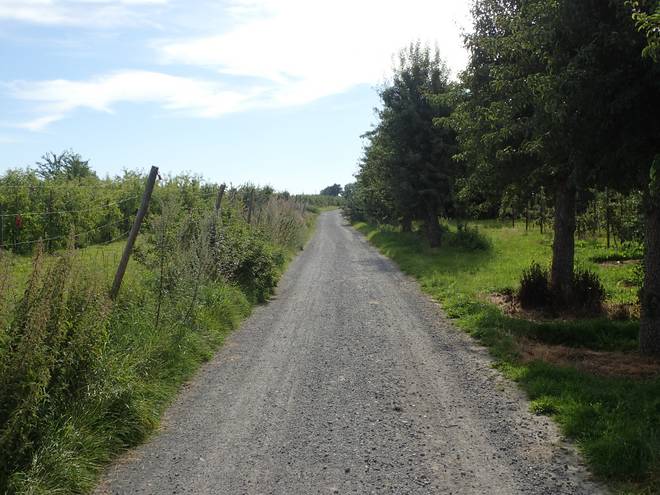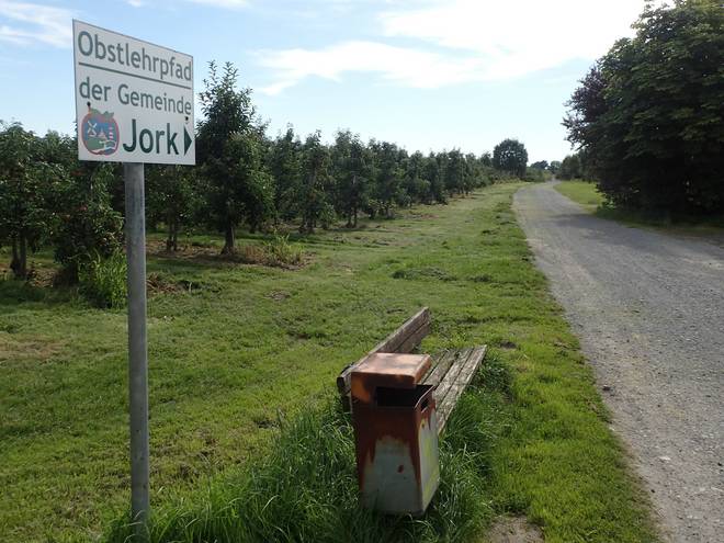 Westerminnerweg Über den Obstlehrpfad ging es weiter Richtung Jork. Ein paar Stationen mit Informationen gab es entlang des Weges. Ich hatte in der Hitze aber keinen Nerv, so viel zu lesen. |