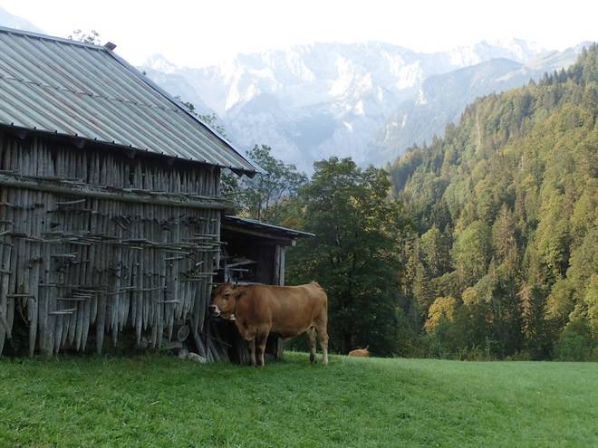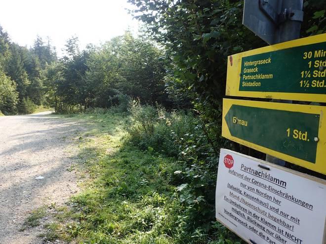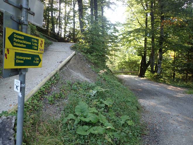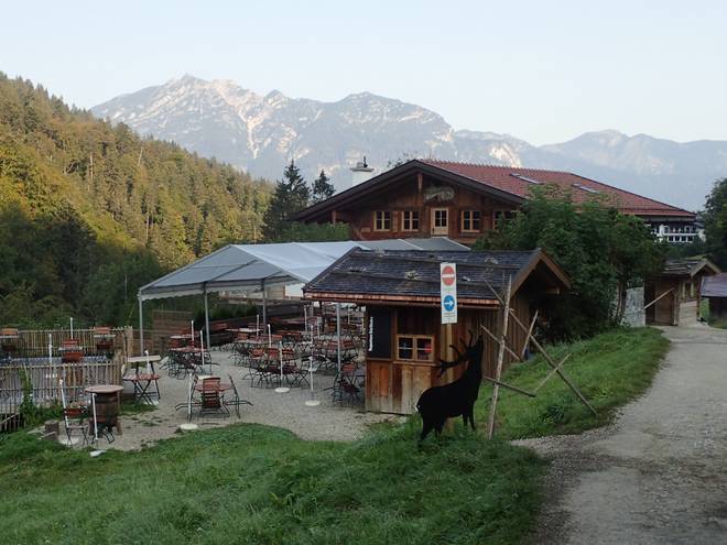 Vordergraseck Hinter dem Biergarten ist die Graseckbahn. Mit der könnte man wieder runterfahren und die Partnachklamm umgehen. |