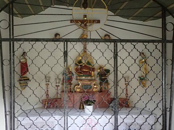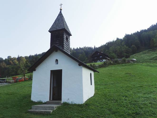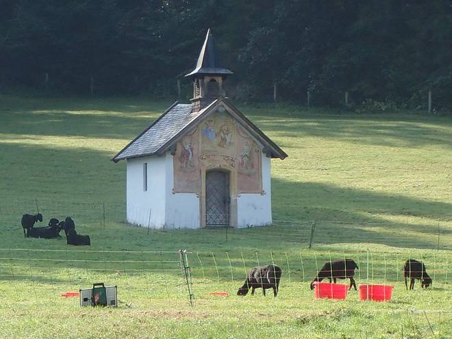 Kapelle Elmau Elmau Eigentlich wollte ich an die Kapelle ran, aber die war von allem Seiten abgesperrt. Da half nur der Zoom. |