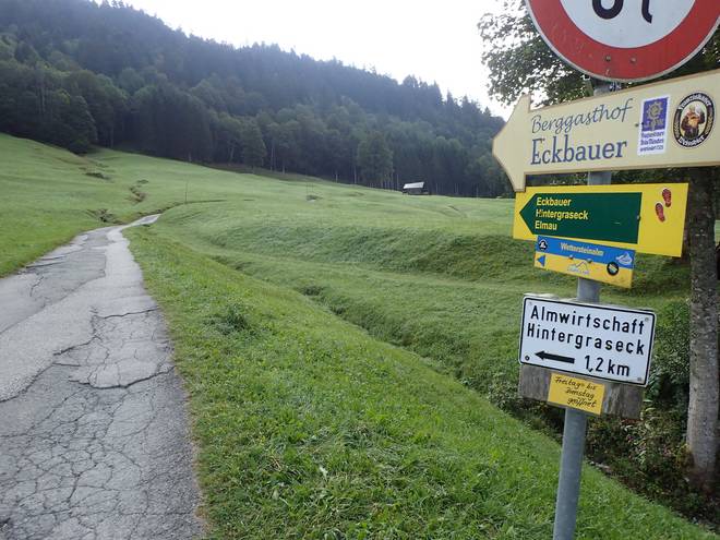 Richtung Hintergraseck 9.10 Uhr Hintergraseck 15 Minuten Nach meinem Plan lag Elmau schon bei Km 11,3. Also etwa fünf Kilometer voraus. Was dauerte das so lange? |