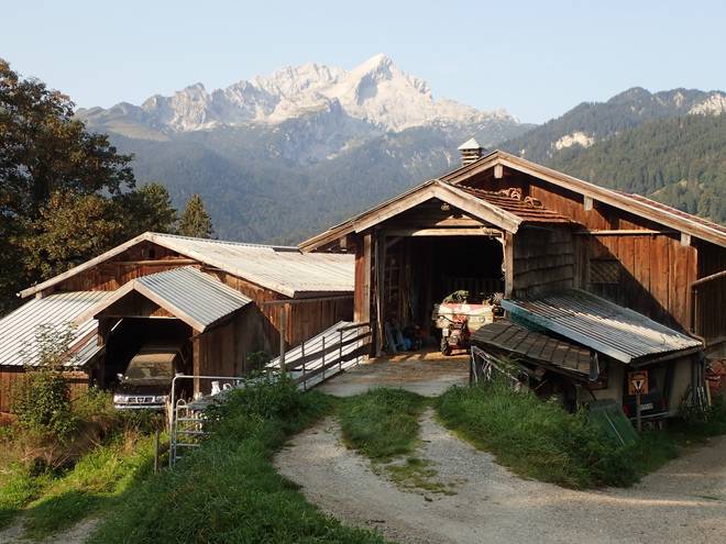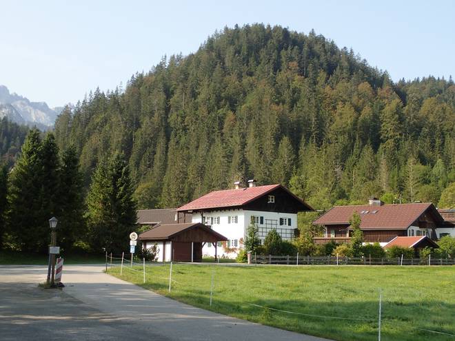 Richtung Elmau Während ich noch darüber nachdachte, ob mich von hier jemand nach wo auch immer mitnehmen könnte, ließen die Schmerzen wieder nach. |