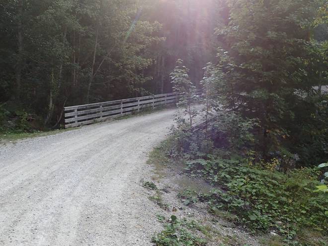 Ferchenbach-Brücke Richtung Elmau Aber zunächst ging es weiter. Mußte ja auch. Die nächste echte Ausstiegschance war in Mittenbach. Wenn ich etwas abkürzte, könnte ich ungefähr nach 23 Kilometern da sein. |