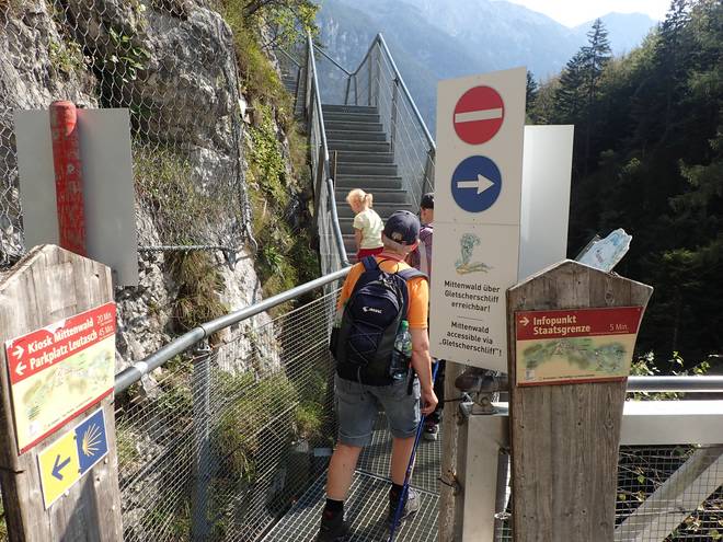 Leutascher Geisterklamm Oh oh... das war gar nicht gut. Ich wollte doch geradeaus weiter. Aber das wurde nix. Bis zu dem Aussichtspunkt wanderte ich aber trotzdem noch. Machten alle. |