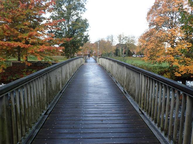 Luhegarten Winsen (Luhe) Der eigentlich geplante Weg raus aus Winsen (Luhe) war gesperrt. Man wollte mich offenbar nicht gehen... laufen lassen. Ungewöhnlich. Aber über diese Brücke und einen Umweh klappte es dann doch. |
