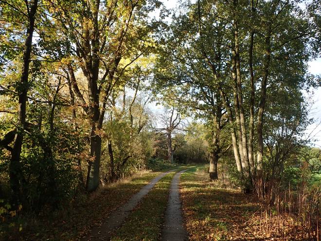 Hinter der Bahn Stelle 10.30 Uhr / Km 12,3 Kein nur schöner Lauf. Es war kalt, es sollte bald regnen und ich konnte nur noch wandern. Mit der Navigation gab es hinter Winsen (Luhe) keine weiteren Probleme, aber bei Regen würde sich das schnell ändern. Immerhin die Strecke war bis hierher schön und mir fiel das Wandern leicht. |