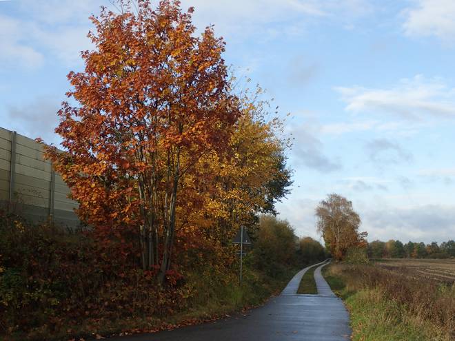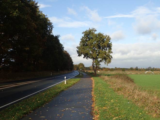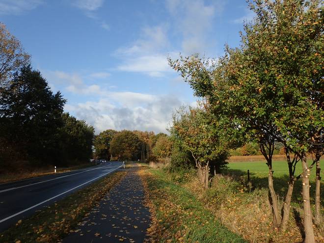 Weg nach Ashausen Zum Start waren es sonnige, aber auch windig kalte 10°C. Spannend war, wie es mit dem Wetter weitergehen würde. Eigentlich hatte es morgens regnen sollen, weswegen ich eine Stunden später gestartet war als geplant. |