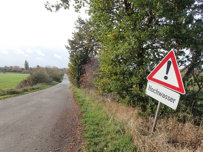 Weg nach Ashausen Geregnet hatte es bisher aber nicht. Dem Wetterbericht zu Folge würde es aber bald mal anfangen. Noch gab es aber keine Wolke am Himmel. Bei dem starken Wind konnte sich das aber auch schnell ändern. |