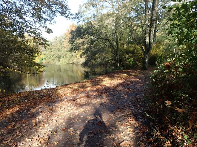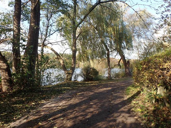Außenmühleteich Harburger Stadtpark Den Außenmühleteich umlief ich auf der Ostseite. Auf der Westseite verlaufen der 2. Grüne Ring und die Strecke des Megamrsches. |