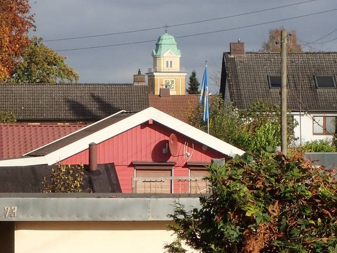 Am Midsommerland Harburger Stadtpark Das müßte der Turm von der Sankt Franz-Joseph-Kirche sein. |
