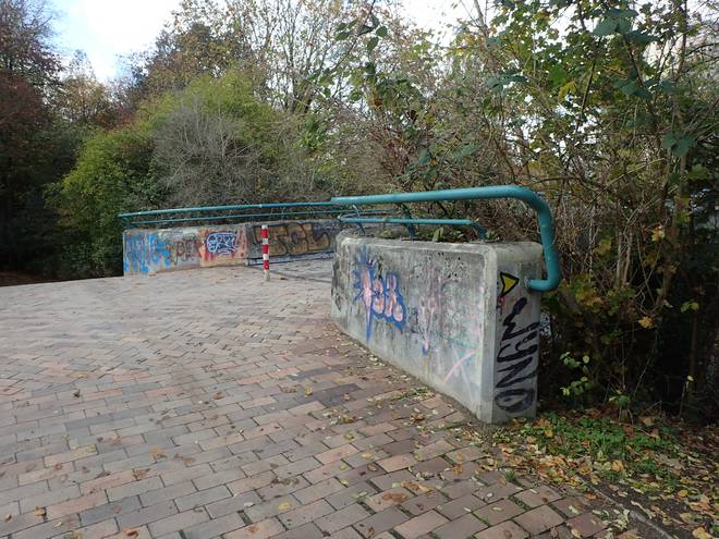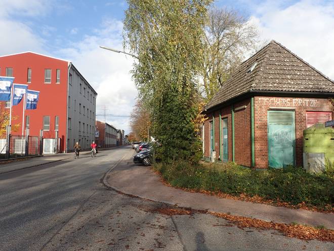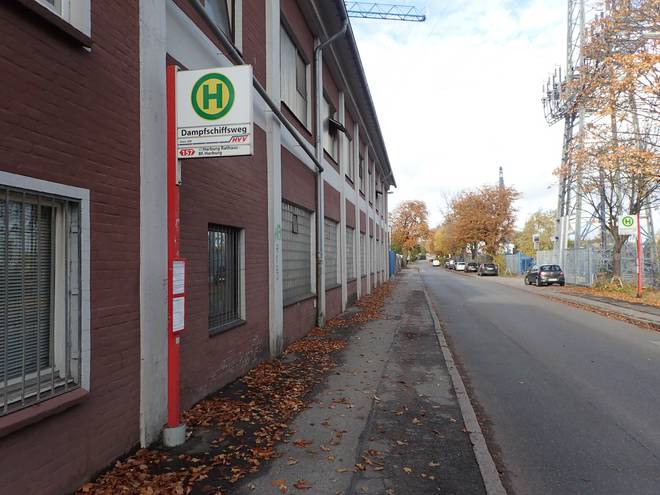 Dampfschiffsweg Eine spannende Ecke. Ich war nicht sicher, ob es hier zu der Alten Harburger Elbbrücke ging. Einige Quellen hielten diesen Weg für gangbar und andere sahen darin eher eine Sackgasse. |