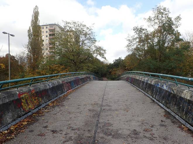 Fußgängerbrücke B 73 Über diese Brücke ging es in den Harburger Hafen. |
