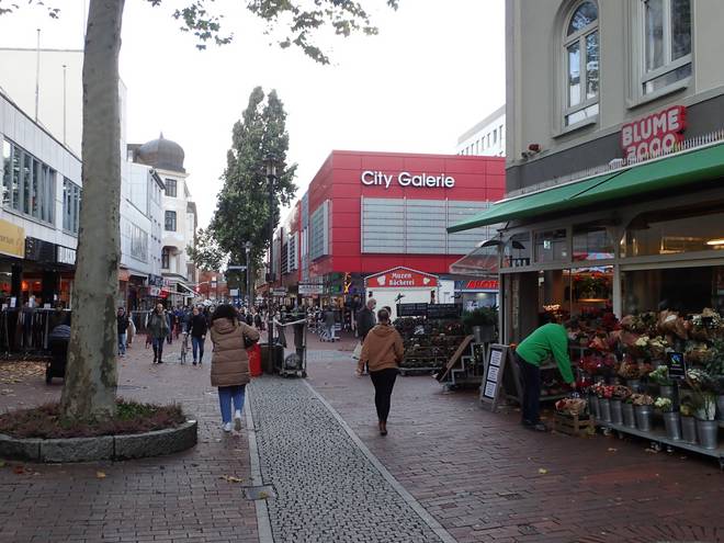 Harburger Schloßstraße Und tatsächlich hatte man nun das ständige Waren vor dem Regen aufgegeben. Den Rest des Tages gab es Sonne. Na, warum nicht gleich so? Ich will ja nicht spoilern, aber Uhrzeit war 13.33 Uhr. |