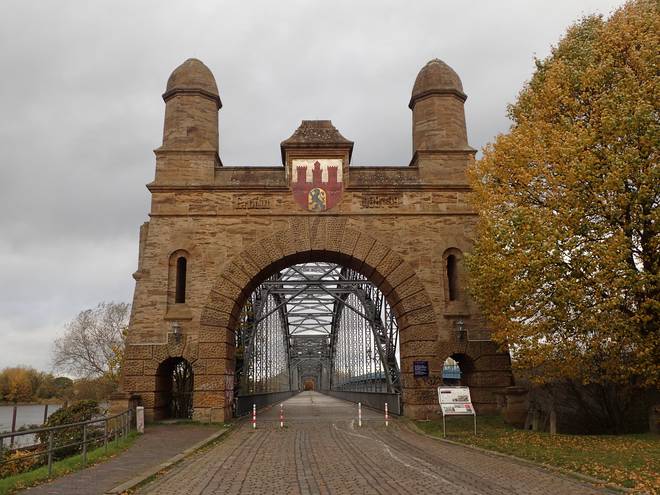 Alte Harburger Elbbrücke Dieses Mal war hier nicht das Ziel. Es ging weiter. Es fehlten noch so 11,3 Kilometer. |