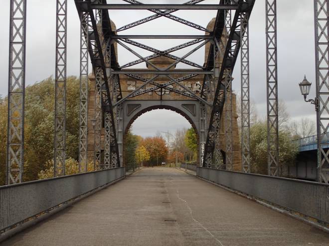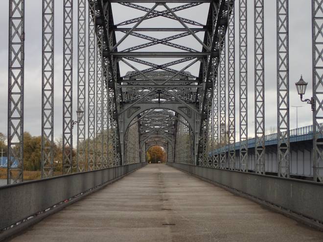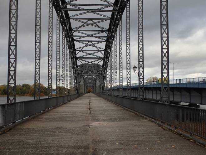 Alte Harburger Elbbrücke 474 Meter lang ist die Brücke über die Süderelbe. Von 1897 bis 1899 erbaut und längst nur für Fußgänger und Radfahrer geöffnet. |