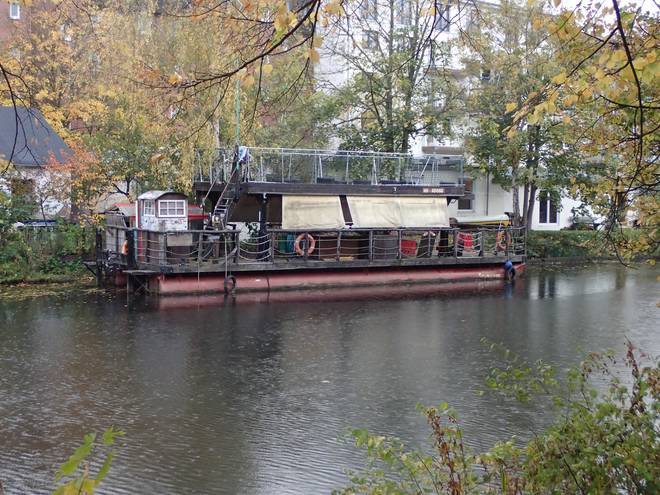 Am Spreehafen Ich hatte inzwischen rund 1,3 Kilometer zuviel auf der Uhr. Dennoch hatte ich Hoffnung, unter sieben Stunden am Ziel anzukommen. |