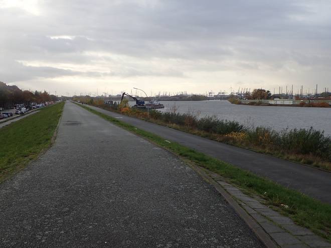 Klütjenfelder Hauptdeich Ich erreichte den Spreehafen. Hier war ich auch schon einen Marathon gelaufen. |