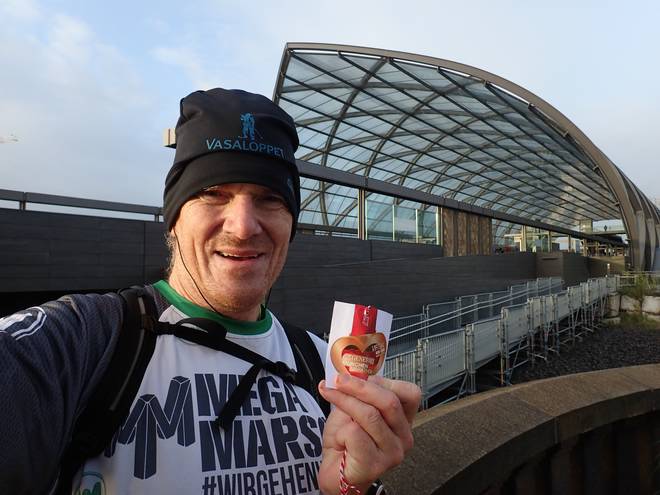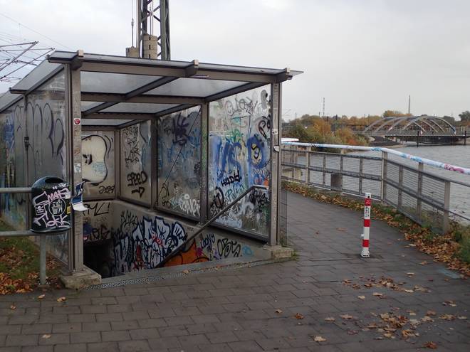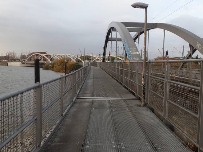 Im August 2014 habe ich hier auf der Brücke mal einen Marathon gewonnen. Damals ging es 100 Male über diese Brücke. 50 Male hin und 50 Male wieder zurück. Damals existierte die U-Bahn-Station noch nicht. Da wanderte ich 3,5 Kilometer bis zur nächsten U-Bahn. Nun fährt man mit der U4 in nur sieben Minuten ins Centrum. |