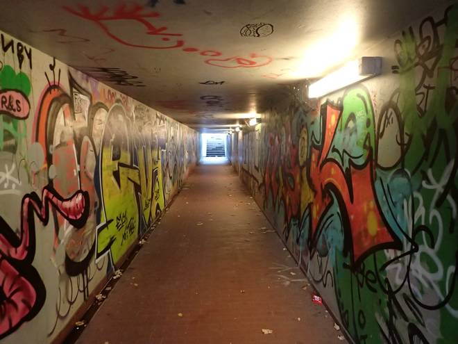 Damm Per Tunnel ging es unter den Schienen des Hafenbahnhof Spreehafen |