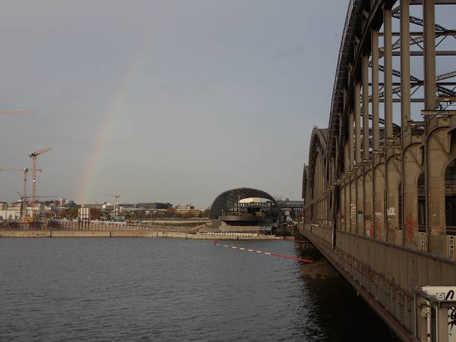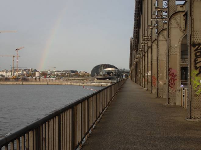 Am Moldauhafen Aber nun kam da vorne die Freihafenelbbrücke in Sicht. Und alles war vergessen. |