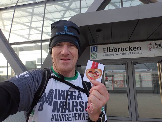 U-Bahn Elbbrücken 15.49 Uhr / Km 43,49 6:57:52 Stunden waren es, die ich für meinen 14. virtuellen Marathon benötigt hatte. Es war nicht schnell, aber es war routiniert durchgezogen. |