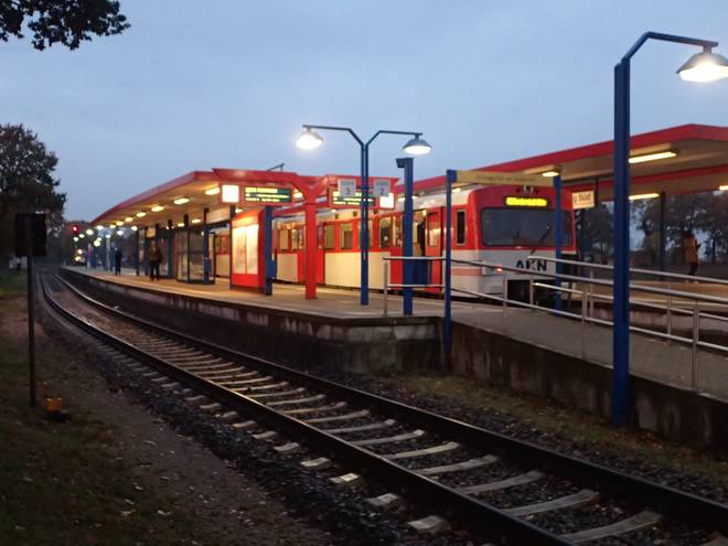 AKN-Station Ulzburg-Süd 7.11 Uhr War doch gut, daß ich mich nicht vom Wetterbericht hatte beirren lassen. Ganztägig Regen sieht anders aus. Hätte mich nicht gewundert, wäre dieser Wetterbericht von den Corona-Panikern gekauft worden, um die noch normalen Leute von Ausflugs-Plänen abzuhalten. Ich ließ mich aber nicht verarschen. |