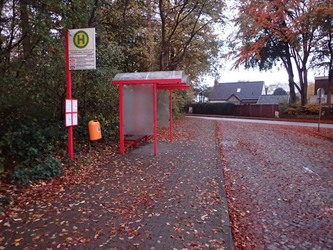 Haltestelle Rhen, Alsterquelle Henstedt-Ulzburg 7.19 Uhr 2x Bus, 1x U-Bahn, 1x AKN-Bahn und nach 73 Minuten hatte ich es hierher geschafft. |