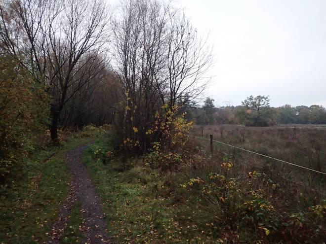 Hein-Timm-Weg Alsterquellmoor 11°C und meist sonnig. Soweit perfekt. Allerdings hatte es Samstag und in der Nacht viel geregnet, weswegen mache Wege nun sehr matschig und naß waren. |