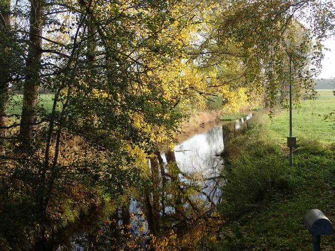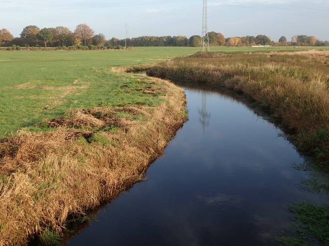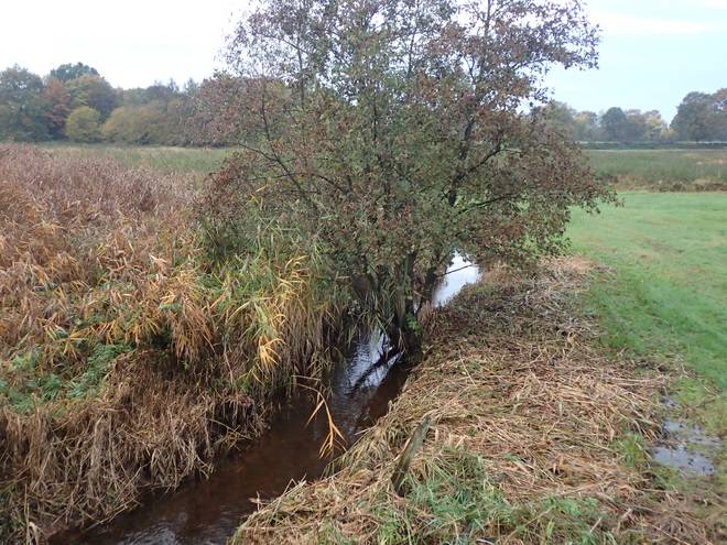 Oberalsterniederung Moorweg Die Alster war nun deutlich breiter. Das könnten jetzt die drei Meter Breite für einen Fluß sein. |
