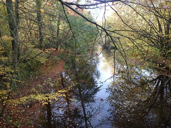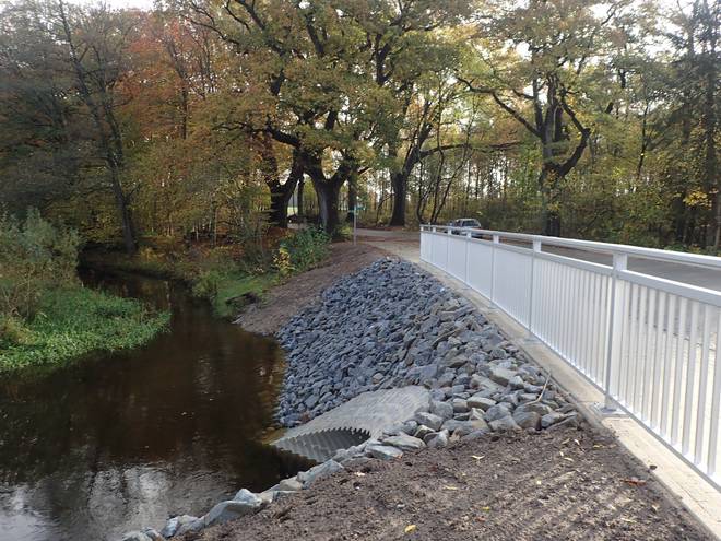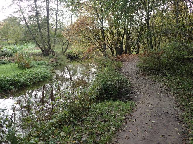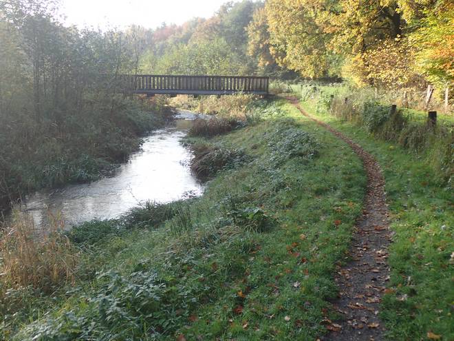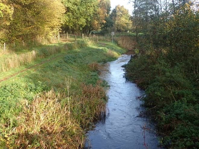 An der Alster Direkt hinter der Alsterquelle kann man ein paar Meter der Alster auf einem Weg folgen. Danach erst wieder hier. Fast 19 Kilometer Flußlauf später war das hier das ersten Mal wieder der Fall. |